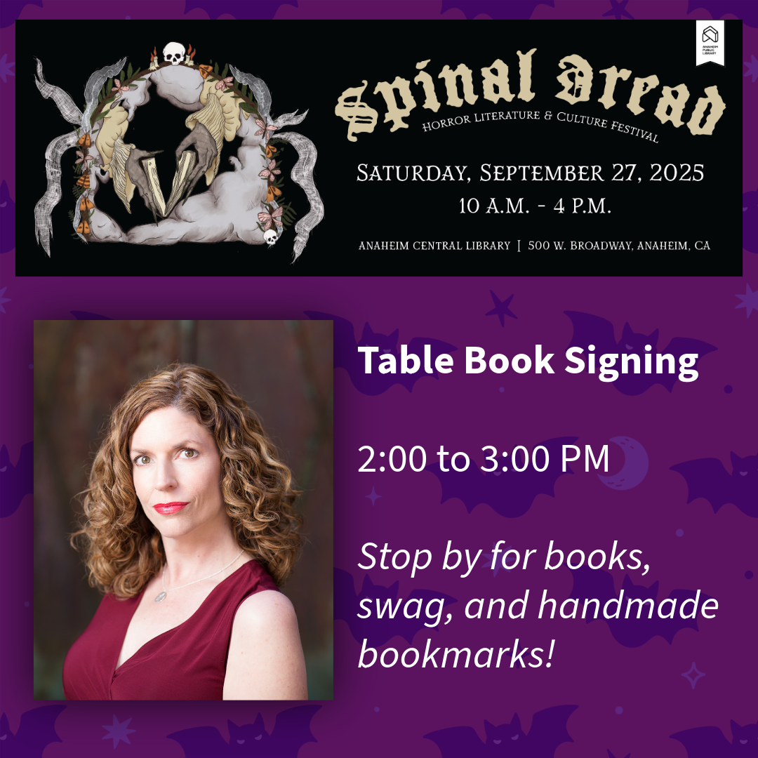 I've got a spot at Spinal Dread: Horror Literature and Culture Festival in Anaheim on Saturday, September 27! I'll be signing books from 2:00 - 3:00 PM. And I'll have some free goodies on hand, including hand-painted bookmarks! All the details are here: