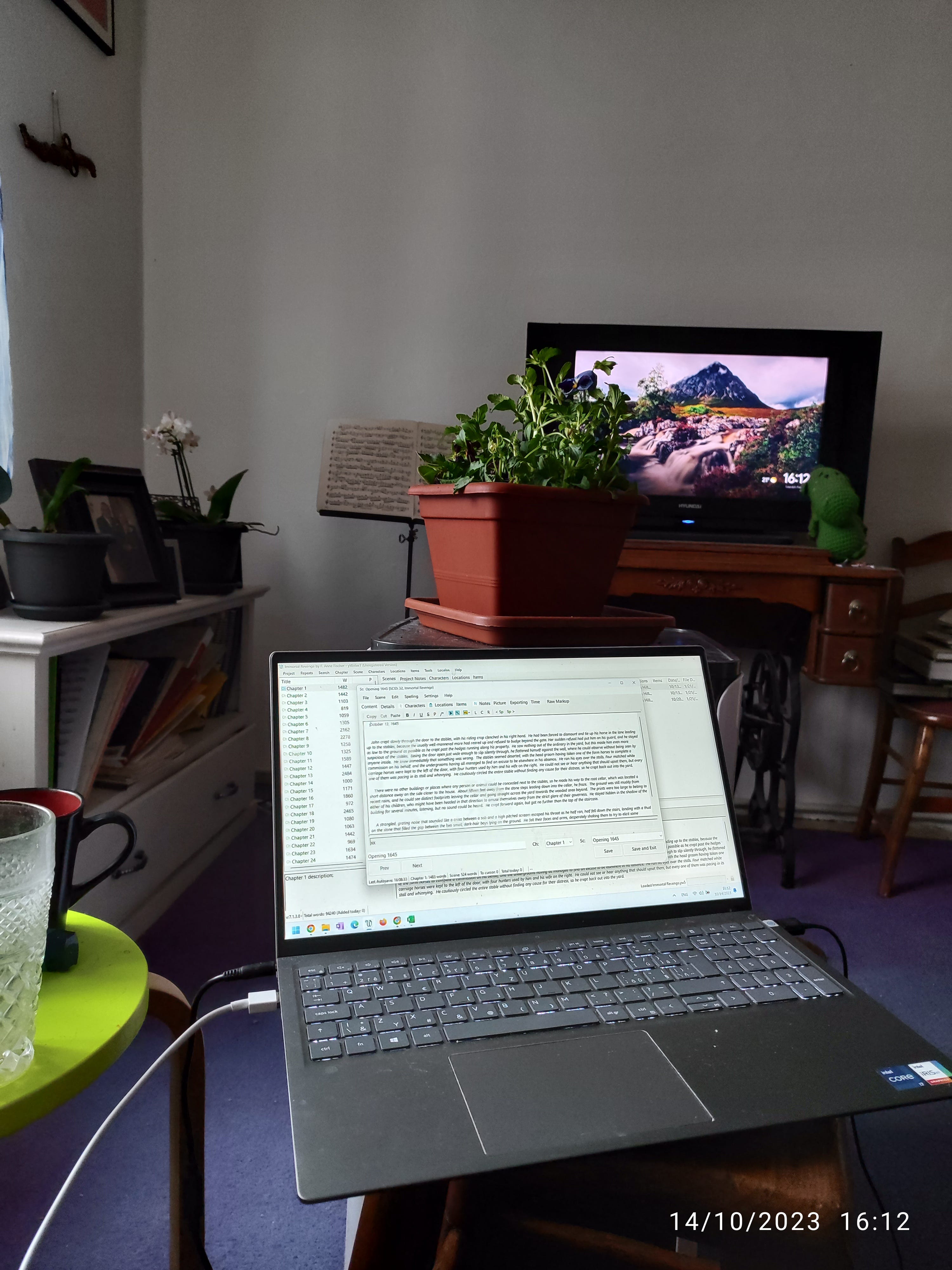 My day starts with coffee, yoghurt (unless I really want pancakes), and a nice hot shower. If it's nice out, sometimes I'll go to the park down the street from me and read for a bit. If not, I'll curl up in my blankets and watch a nice murder mystery if I'm not ready to write right away. Whatever it takes to get comfortable and clear my head. My writing space and my movie viewing space are both my couch. As far as my writing process, I'm a natural pantser, but have found that there's less work on the editing side of things if I do a bit of plotting, so I tend to just start writing whatever comes into my head but also keep a very loose outline of where I'm going next and where I ultimately want the story to end up. I need a quiet room to write, but will have music or a movie playing in the background when I edit so that my brain doesn't go looking for other distractions :)