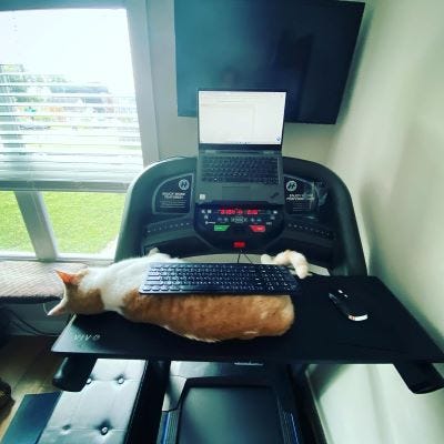 I'm not great at sitting, so I like to go for a run first. Or a bike ride if it's not a running day. I'm a pantser and I often find solutions to my stuck scenes while I'm out on the trail. I even have a desk attachment for my treadmill so that I can write while moving if I want to. I have separate lap desks in my living room and my bedroom so that I can grab them and write whenever and wherever I feel like it. I even have a thing for the bathtub, and yes, I have been known to write in there when I'm on a roll. My desk is great, but I work from home, so mentally it's nice for me to have other places to write so that I'm separating myself from work. If I'm writing in the evening after work, I like to go for a walk around the block once I clock out to signal myself that I'm done for the day and get in my creative headspace for writing.