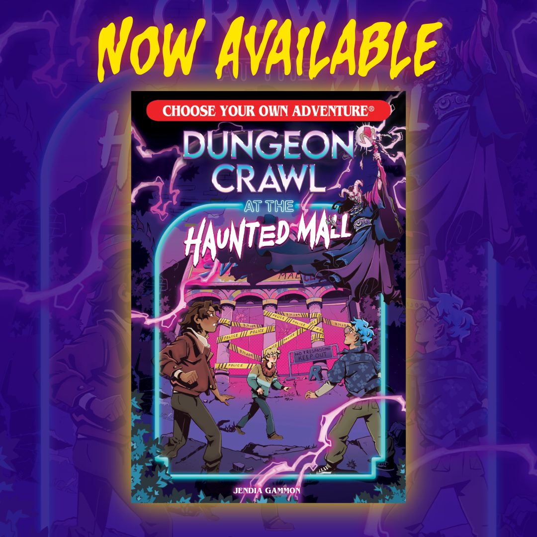 From Nebula and BSFA Award finalist Jendia Gammon, Dungeon Crawl at the Haunted Mall is a brand new Choose Your Own Adventure® book publishing via Chooseco LLC on April 21, 2026, distributed by Penguin Random House.