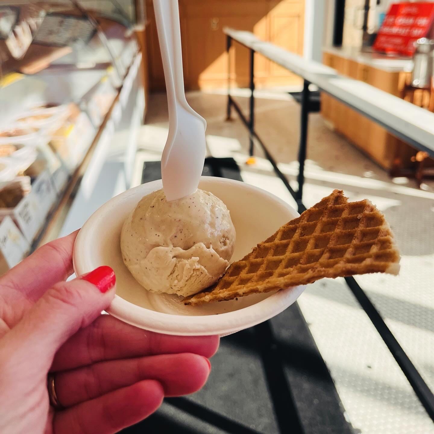 N. Avenue 56 in Highland Park, Los Angeles. Tacos with handmade flour tortillas at Homestate. The interior of Highland Park Bowl. A Sasquatch crossing. Outside Kindness and Mischief Coffee. Jeni's Ice Cream. And me near some flowers.