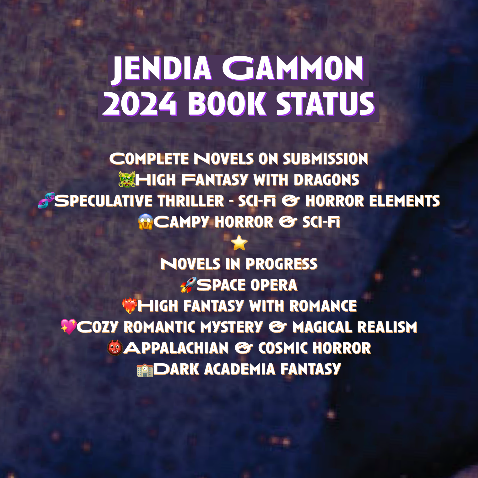And in the latter half of the year, I'll be working on an Appalachian & cosmic horror novel as well as a dark academia fantasy.