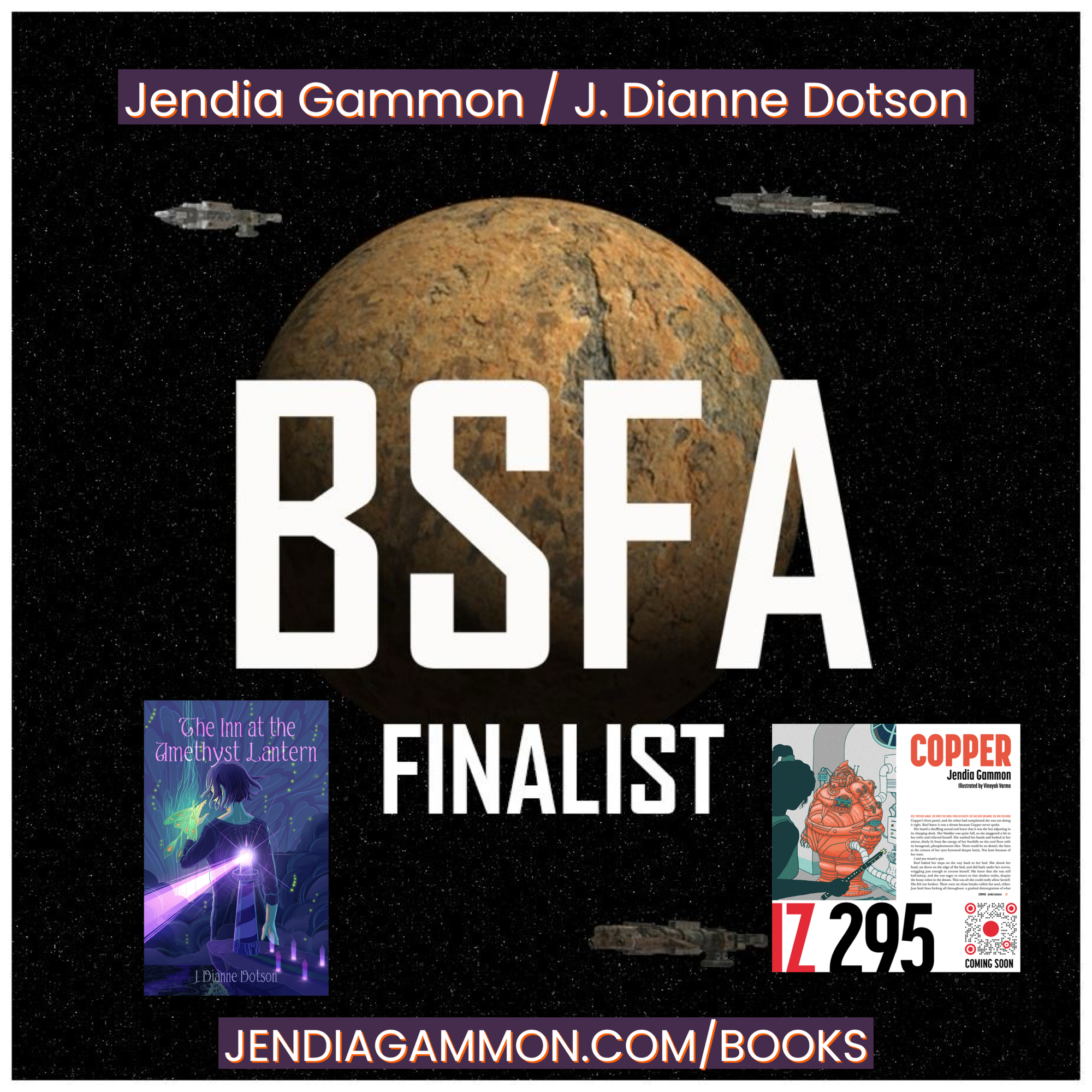 If you missed the news, here's a post on my blog. I'm a two-time finalist for the British Science Fiction Association (BSFA) awards! A tremendous honor and a first for me. Thank you to all who voted in the longlist and got me here! VOTING IS OPEN and continues until EasterCon. Thank you for your votes for best fiction for younger readers and best short story! I appreciate you!