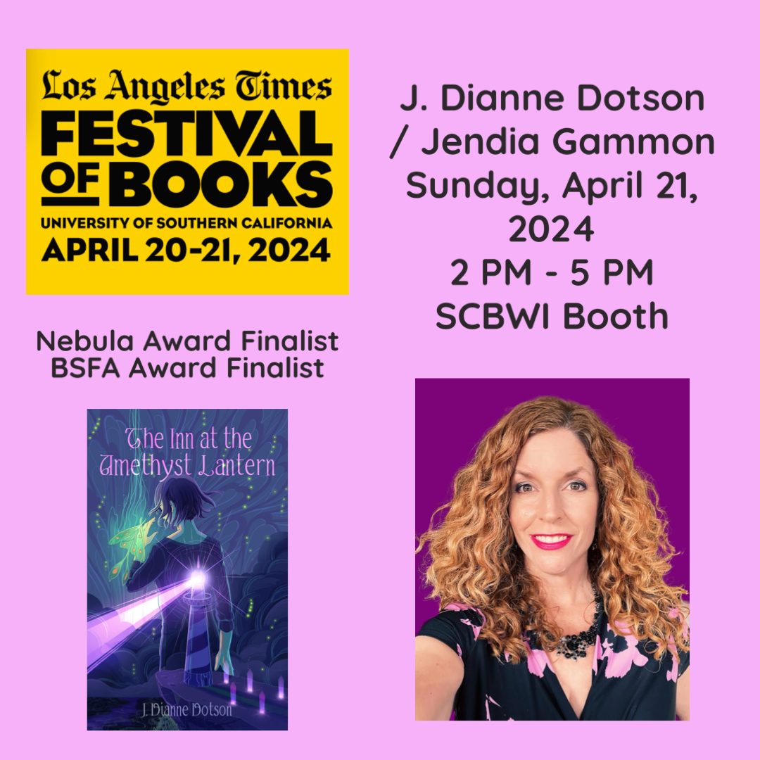 I grabbed the very last slot for the SCBWI (Society of Children's Book Writers and Illustrators) booth for the LA Times Festival of Books, so look for me Sunday, April 21 from 2 PM to 5 PM! I'll have copies of my Nebula Awards finalist book, THE INN AT THE AMETHYST LANTERN, available for sale and signing!