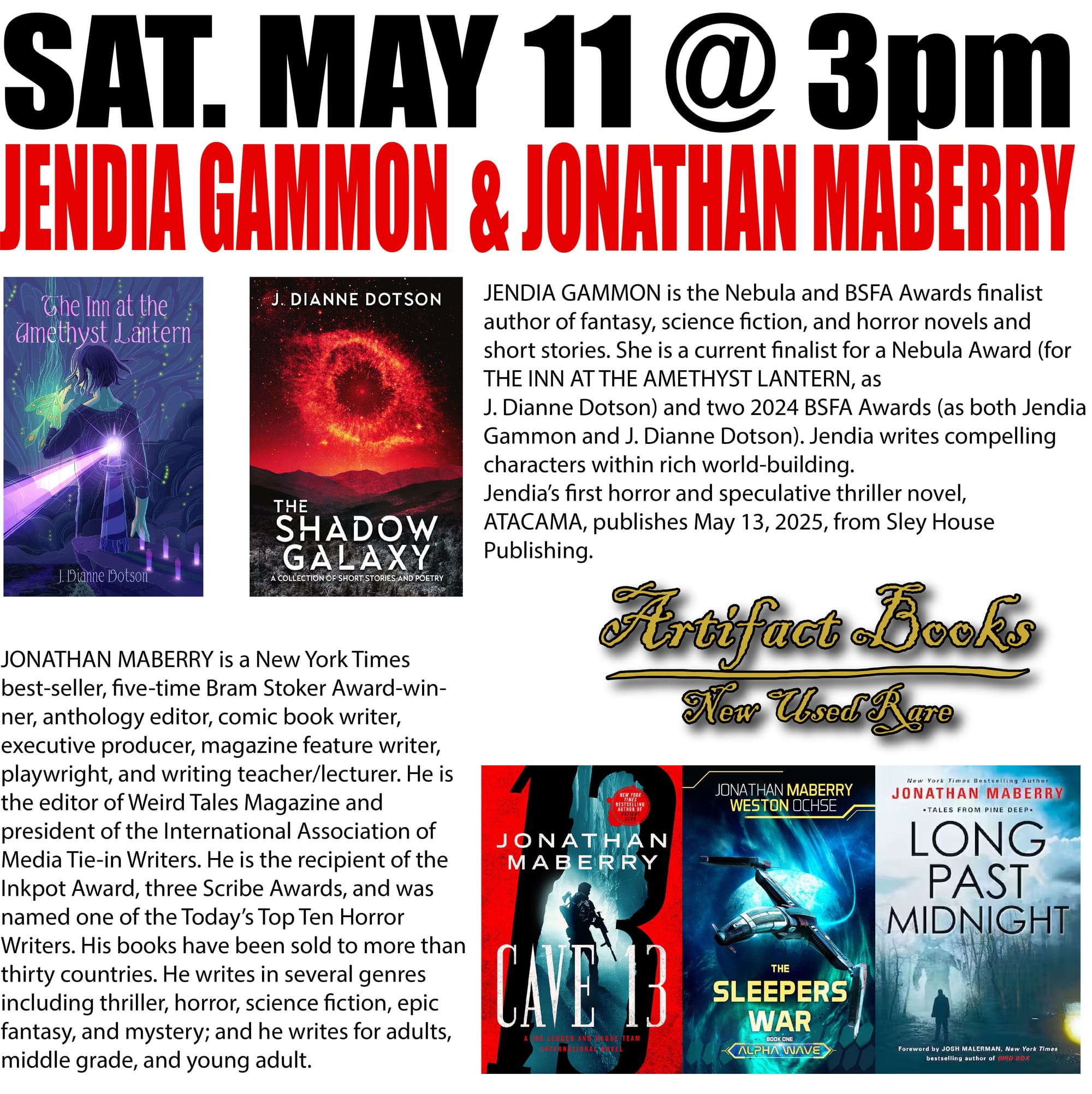On Saturday, May 11, join two cross-genre authors for an author event! I'm signing books and doing a reading at Artifact Rare Books in Encinitas, California, alongside Jonathan Maberry, multi Bram Stoker Award winner and New York Times bestseller.