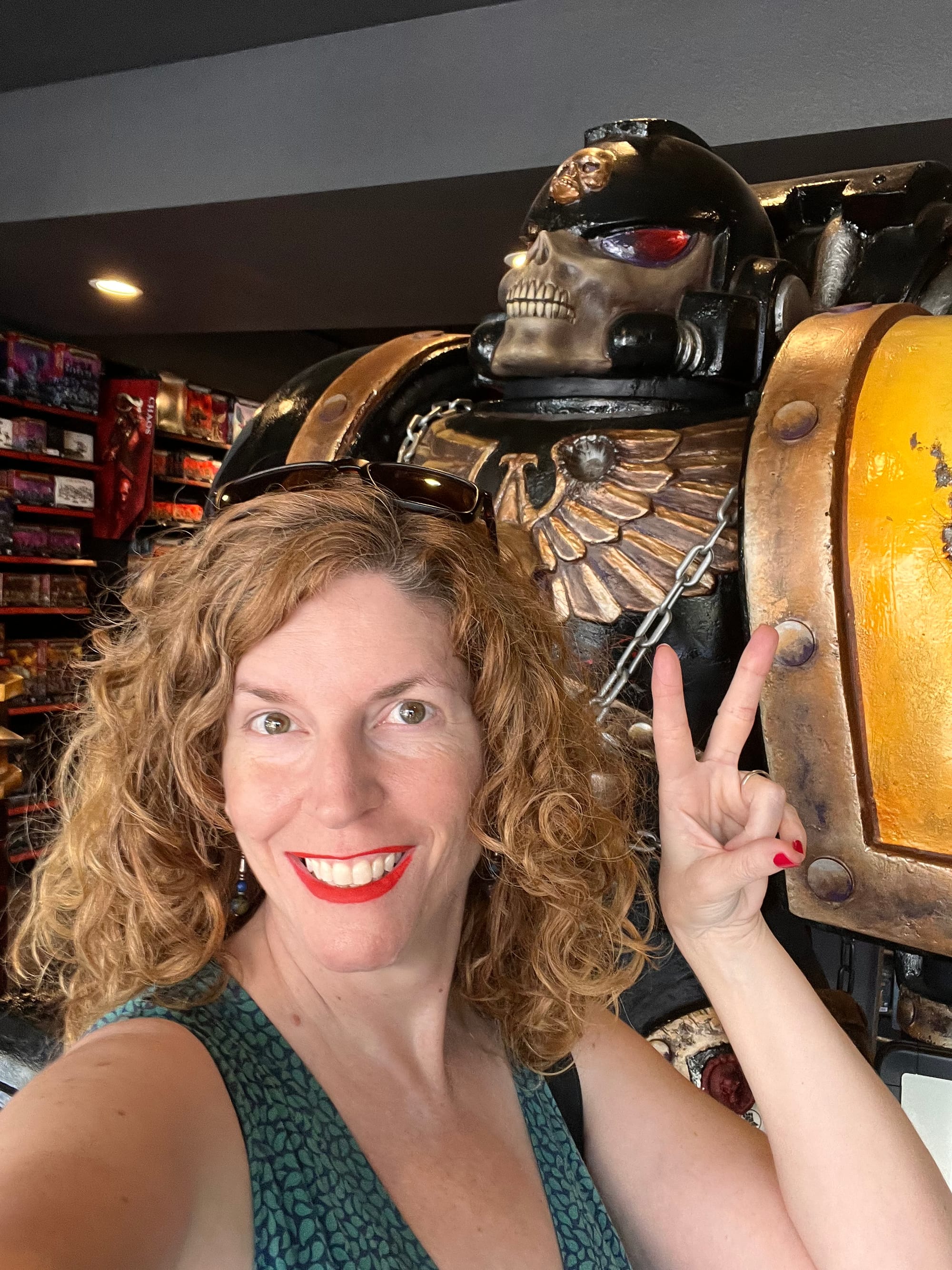 On Saturday, I drove out to Monrovia to visit the Warhammer Store and Cafe. As you can see, I made a friend! This is a great shop where you can get all sorts of miniatures and gaming implements, as well as books and other ephemera, for your Warhammer fan or for yourself. I was pleased to see books written some of my friends, such as Adrian Tchaikovsky. I'd love to write some stories in this universe one day.